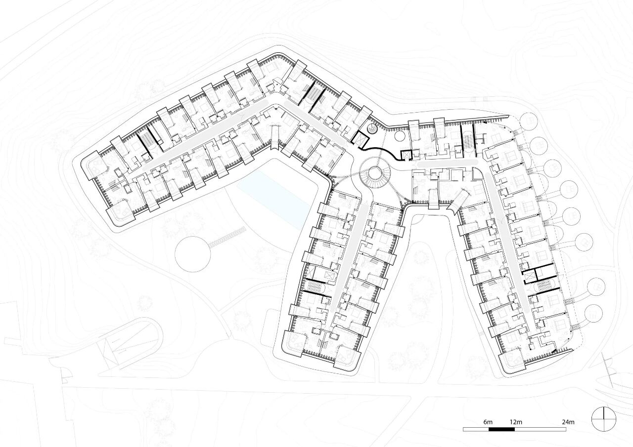 选址曾为20世纪30年代军事区域,建筑群巧妙融合场地历史,赋予疗愈空间更深层的精神内涵。