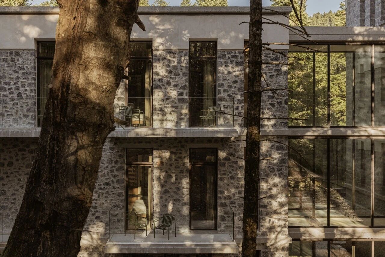 Manna酒店的前身是20世纪20年代末为肺结核患者设计的疗养院,曾寄托着”林中疗养”的健康理想。